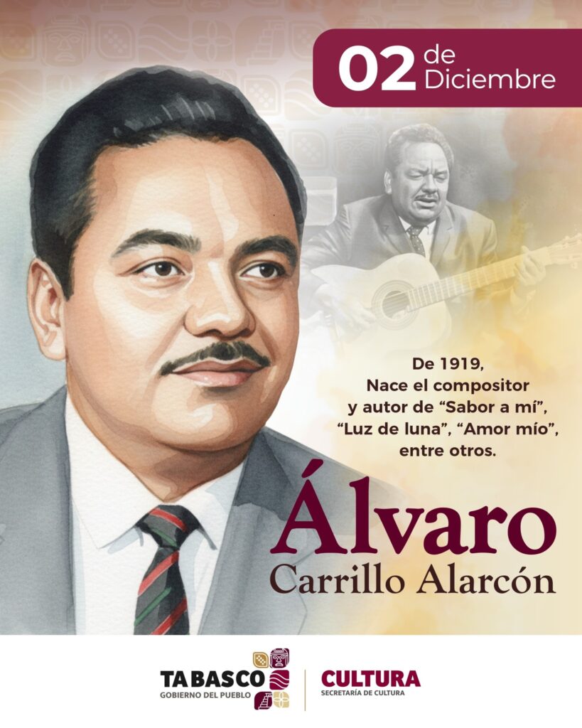 Hoy recordamos el legado de Álvaro Carrillo Alarcón, nacido un 2 de diciembre de 1919. Compositor de alma profunda y voz eterna, nos regaló joyas como “Sabor a mí”, “Luz de luna” y “Amor mío”.