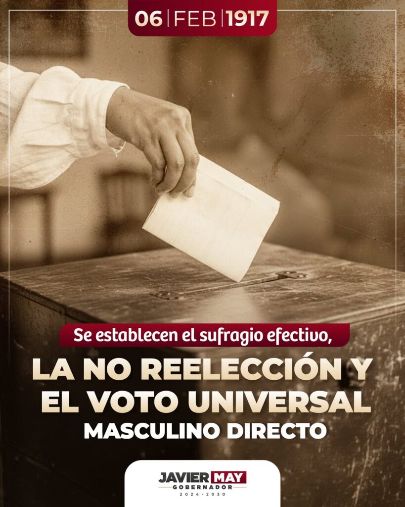 El 5 de febrero de 1917 nació la Constitución Política de los Estados Unidos Mexicanos, guía de nuestra vida democrática y reflejo de los ideales de justicia y libertad.