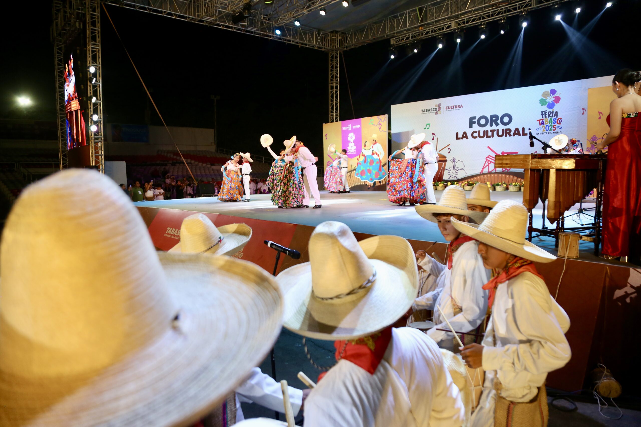 A las 18:15 horas dio inicio el programa artístico del municipio de Macuspana bajo el lema “Cultura, arte y tradición”. El Ballet Folklórico Ixtac-Ja, la Marimba Municipal y los tamborileros “Los Pish-Cub” pusieron de pie al foro con estampas de Veracruz, Tamaulipas, Jalisco y Tabasco, en una explosión de colores, ritmo y autenticidad.