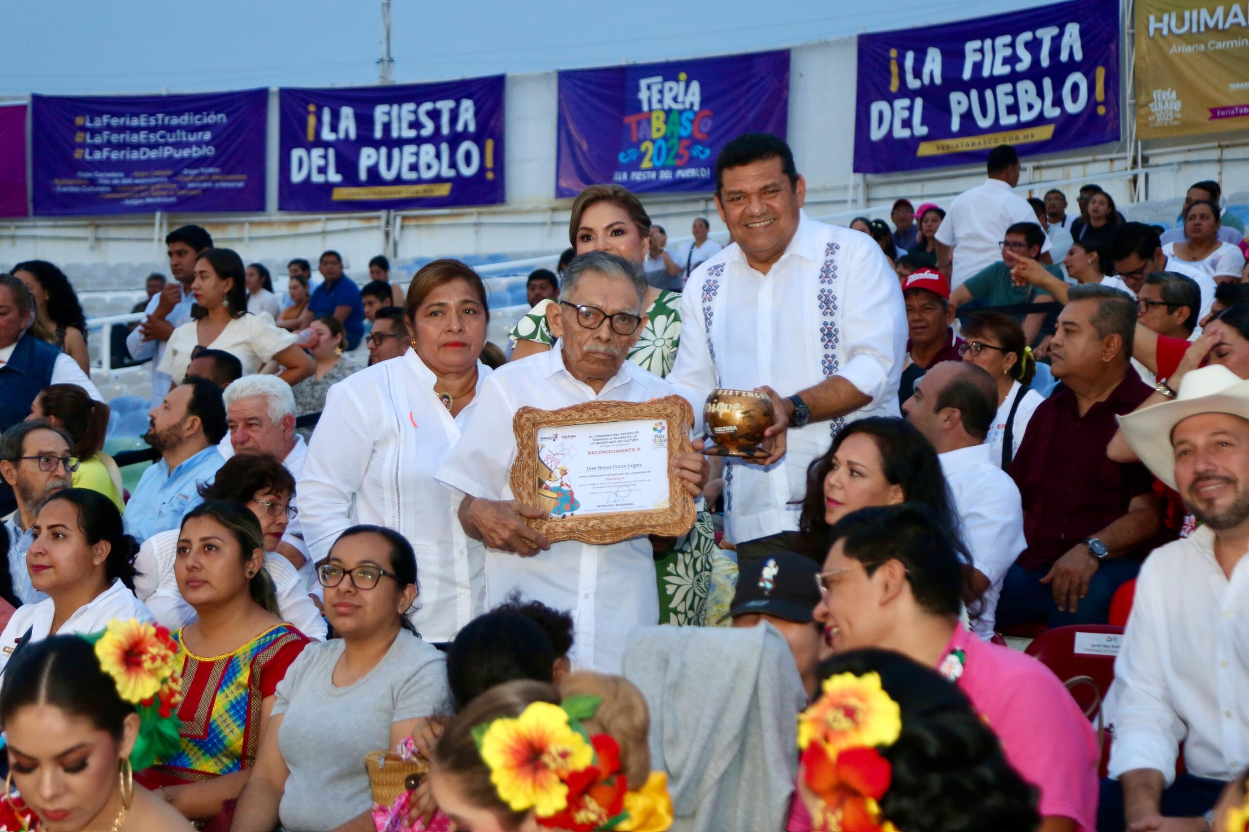 La ceremonia arrancó con una emotiva bienvenida y la entrega de reconocimientos a dos figuras emblemáticas de la identidad municipal: el señor Esteban Camacho Monje, de Macuspana, y Baltazar Hernández López, de Nacajuca, quienes recibieron un merecido homenaje por su legado y compromiso con las raíces culturales de Tabasco.