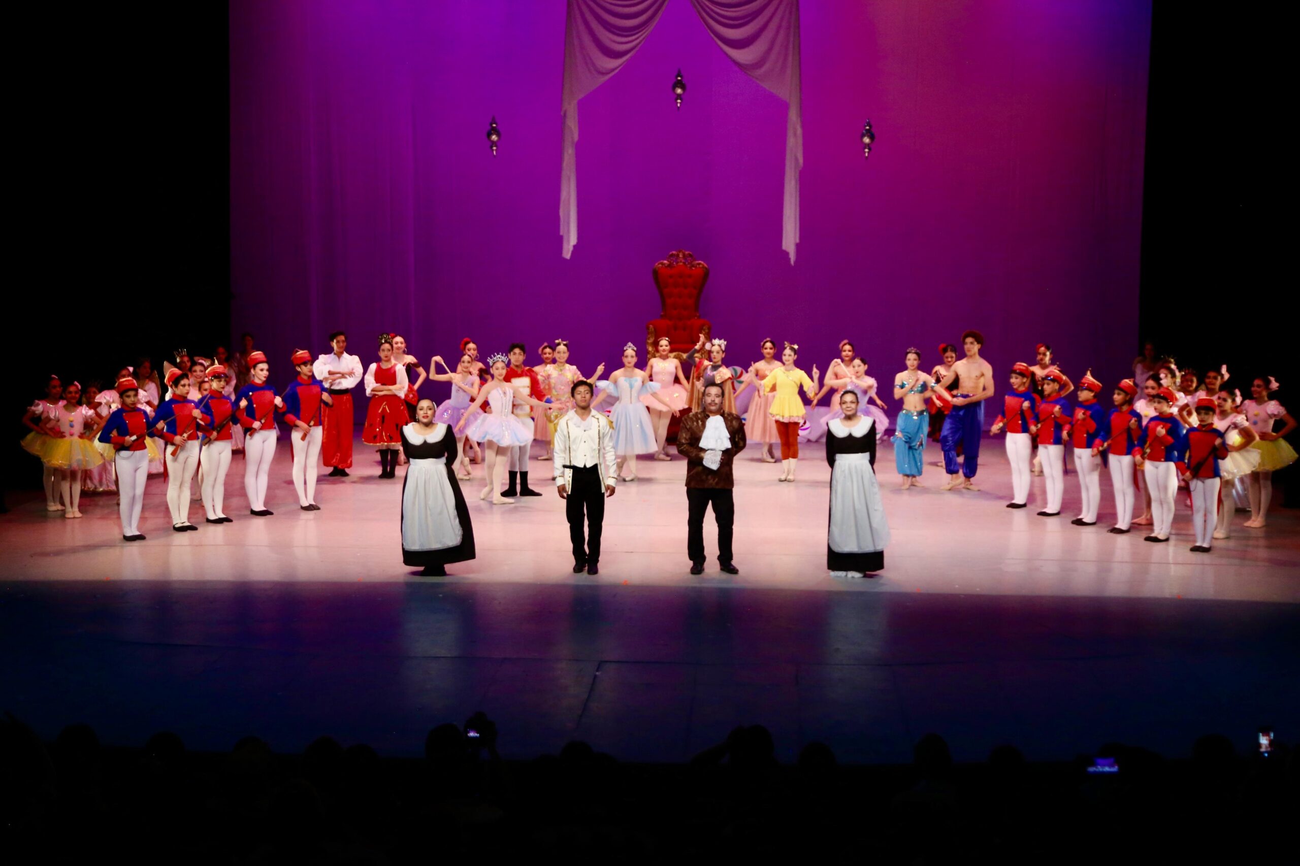 Desde el primer momento, el público fue sumergido en la historia de Clara, cuya travesía entre sueños, magia y batallas fue interpretada con una sensibilidad que conectó con niños, jóvenes y adultos por igual. La lucha contra el Rey Ratón resonó con energía en el escenario, mientras que la transición hacia los reinos de los dulces, las flores y la nieve desplegó un espectáculo visual que llenó de asombro el emblemático recinto.