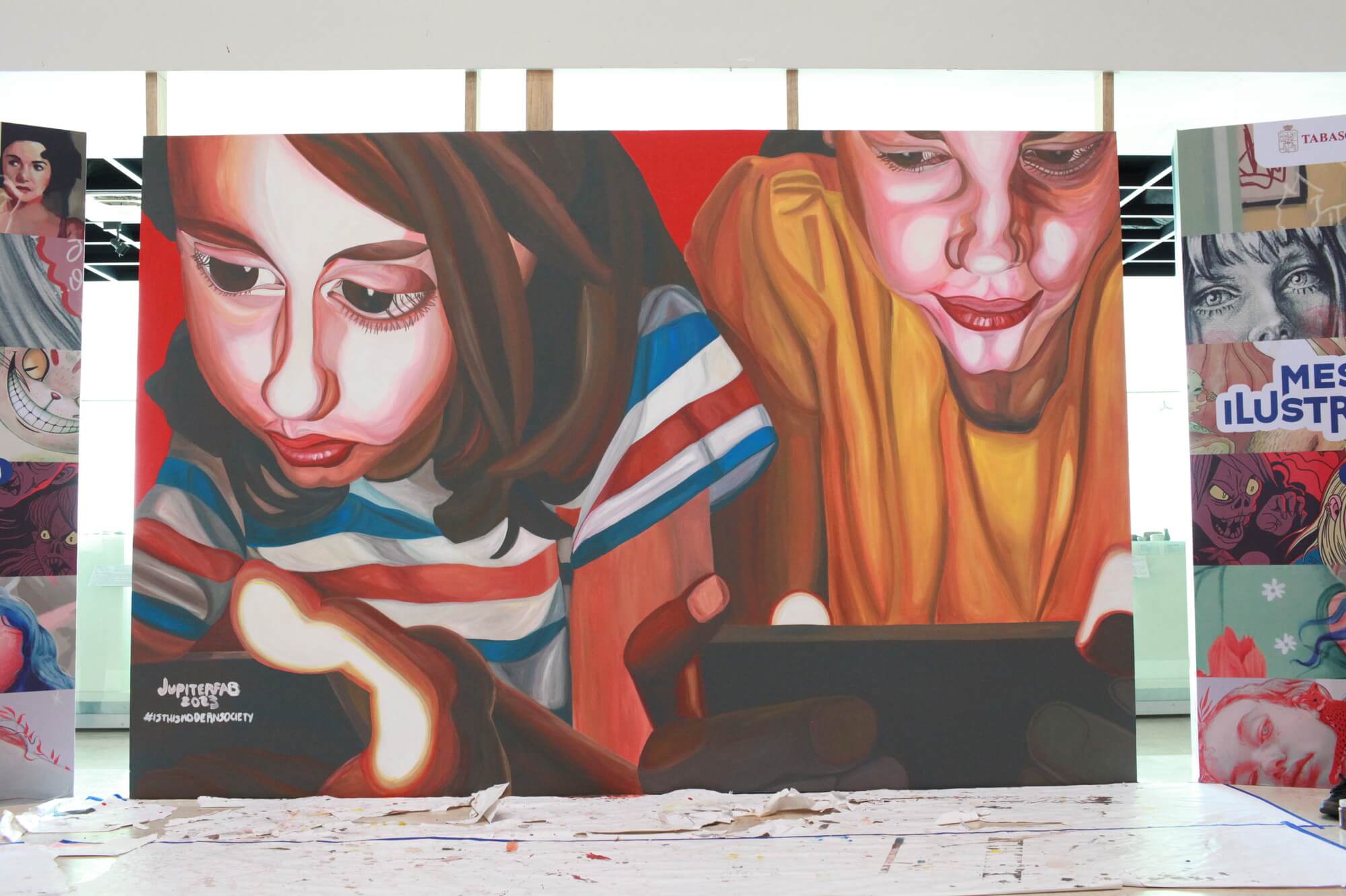 En su obra plástica, representa imágenes desde los límites entre el realismo figurativo, el expresionismo y el diseño gráfico. En ellas, las caras y los cuerpos a menudo son exagerados o deformados. Se aleja del hiperrealismo buscando principalmente mostrar lo que hay detrás de la máscara de sus personajes.