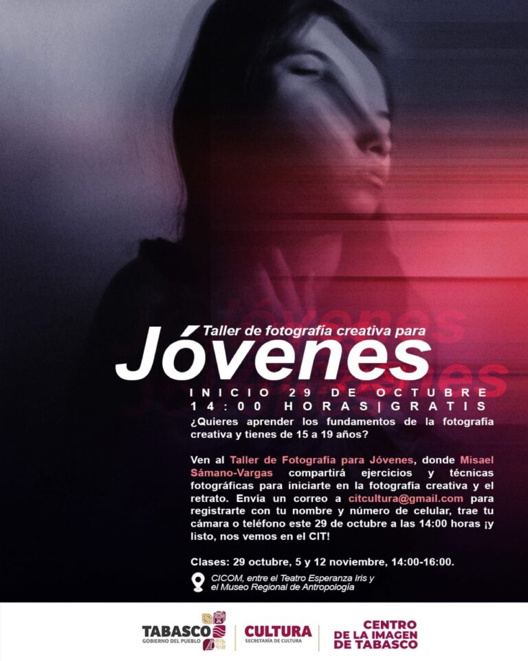¡Exprésate con luz y sombra! La Secretaría de Cultura de Tabasco invita al Taller de Fotografía Creativa. ¡Es gratis! 27 octubre, 2025