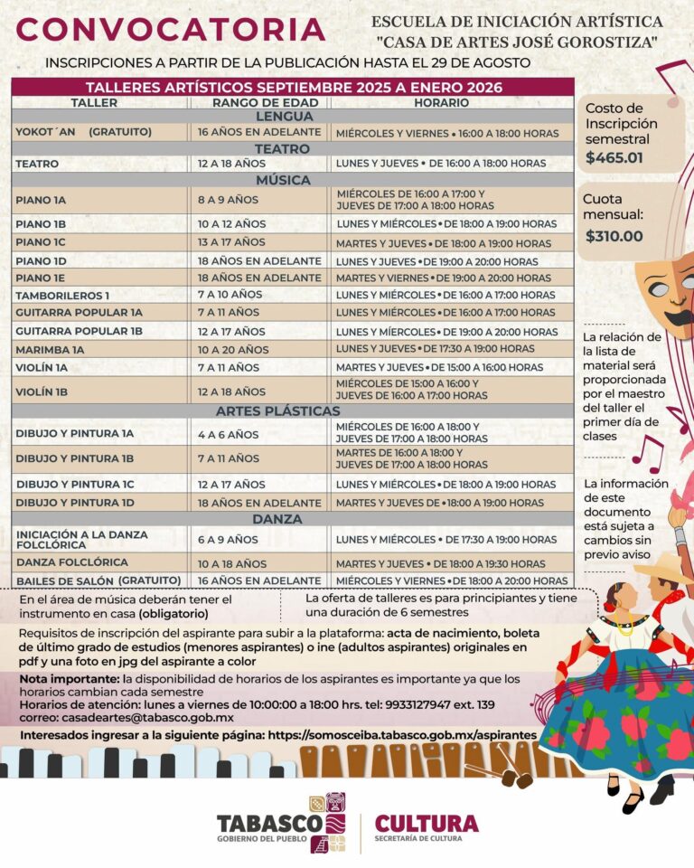 Abre Secretaría de Cultura inscripciones para la Escuela de Iniciación Artística “Casa de Artes José Gorostiza 11 agosto, 2025