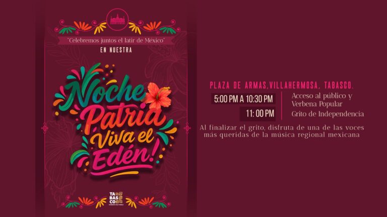 ¡Viva el Edén!”: Tabasco se vestirá de fiesta, sabor y tradición para celebrar la Independencia 27 agosto, 2025
