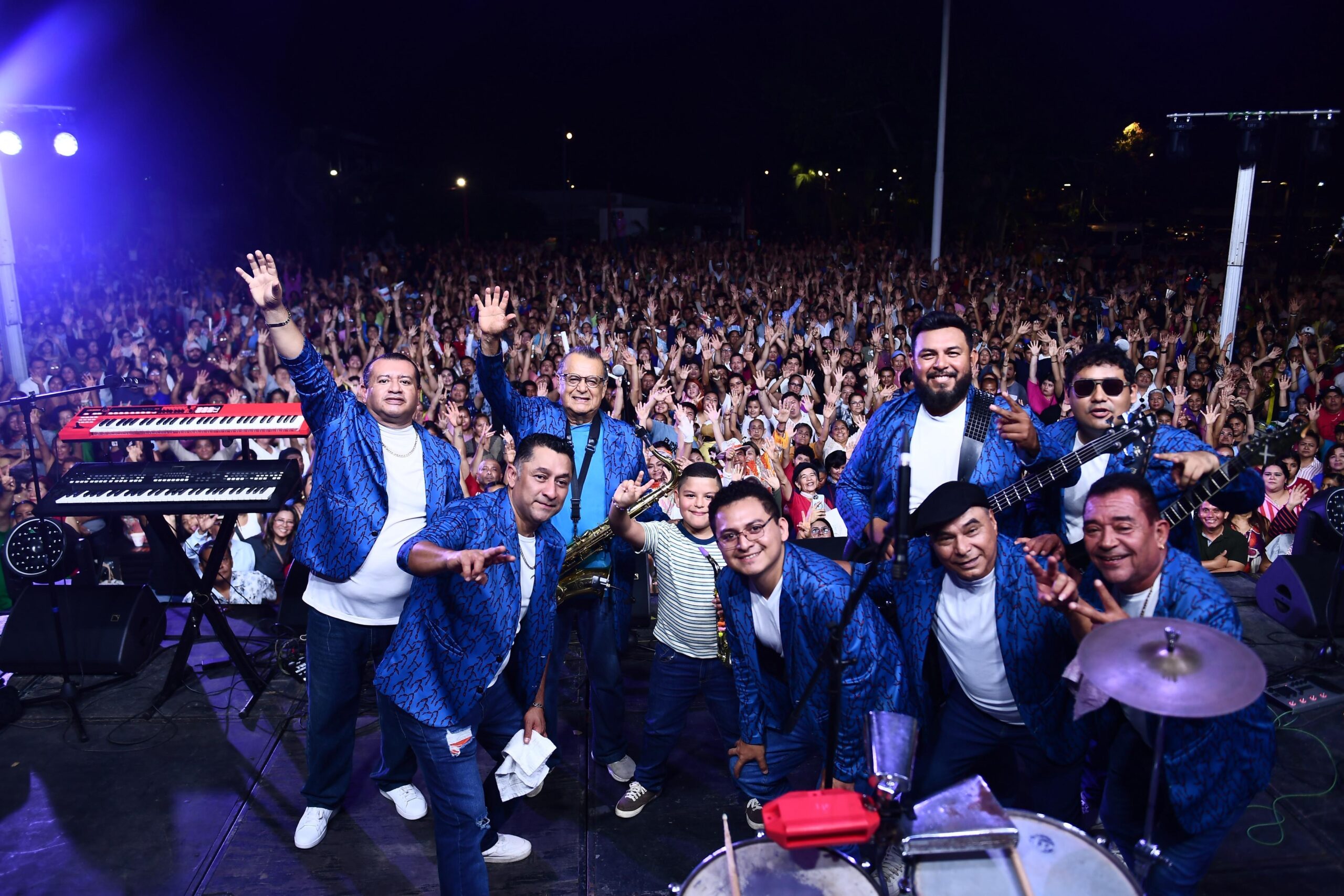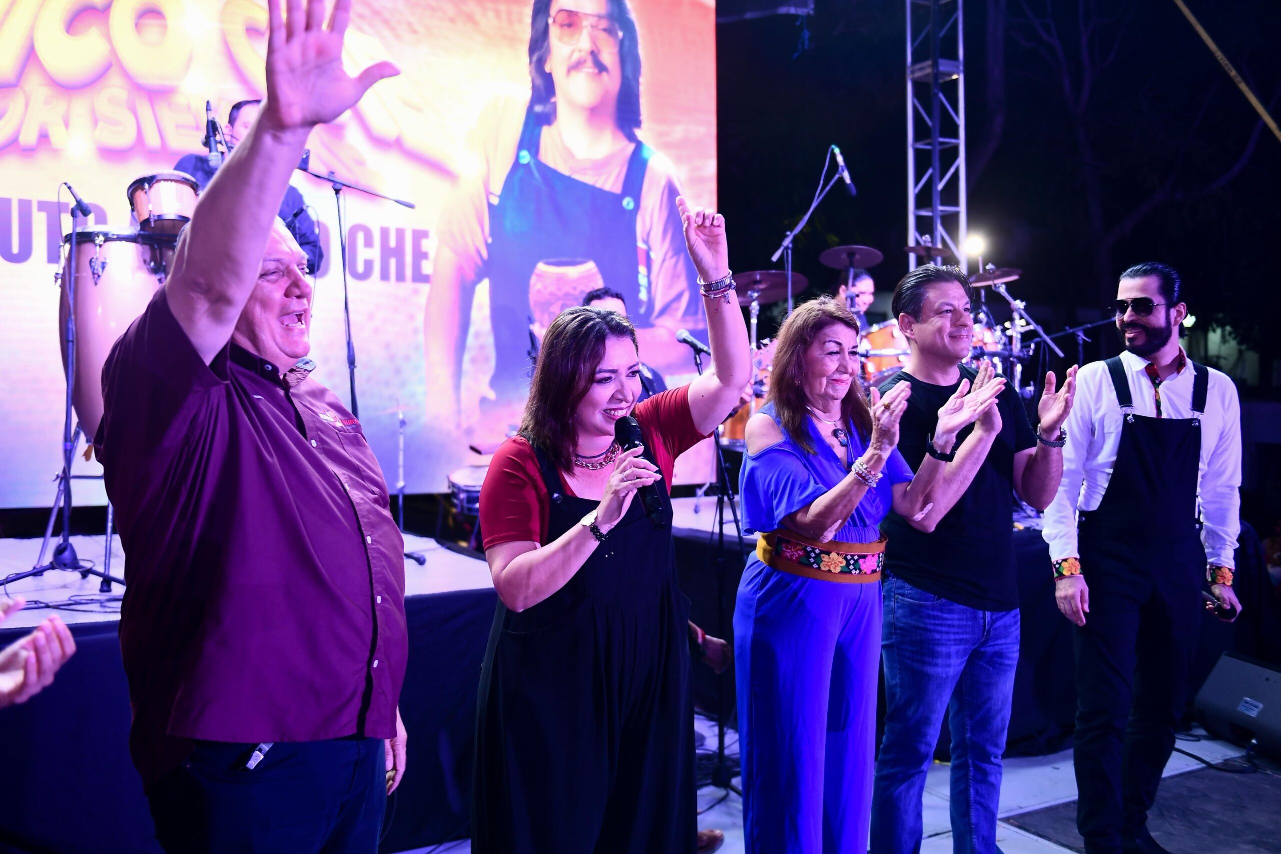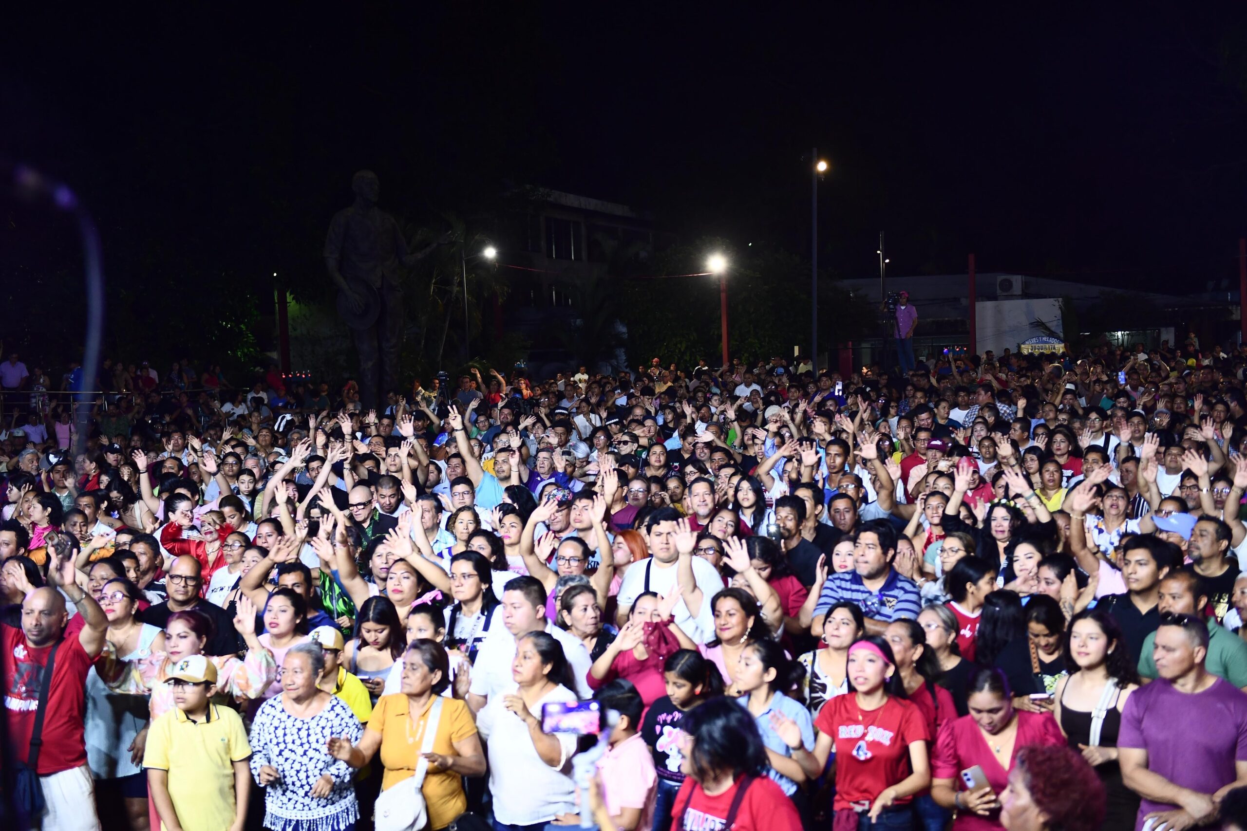 Posteriormente, la explanada de la zona CICOM en Villahermosa se convirtió en el corazón de la celebración. El tributo musical inició con el Grupo Guayacán, seguido por Fusión Mezcal, quienes encendieron el ambiente y prepararon el escenario para una noche cargada de nostalgia y energía.