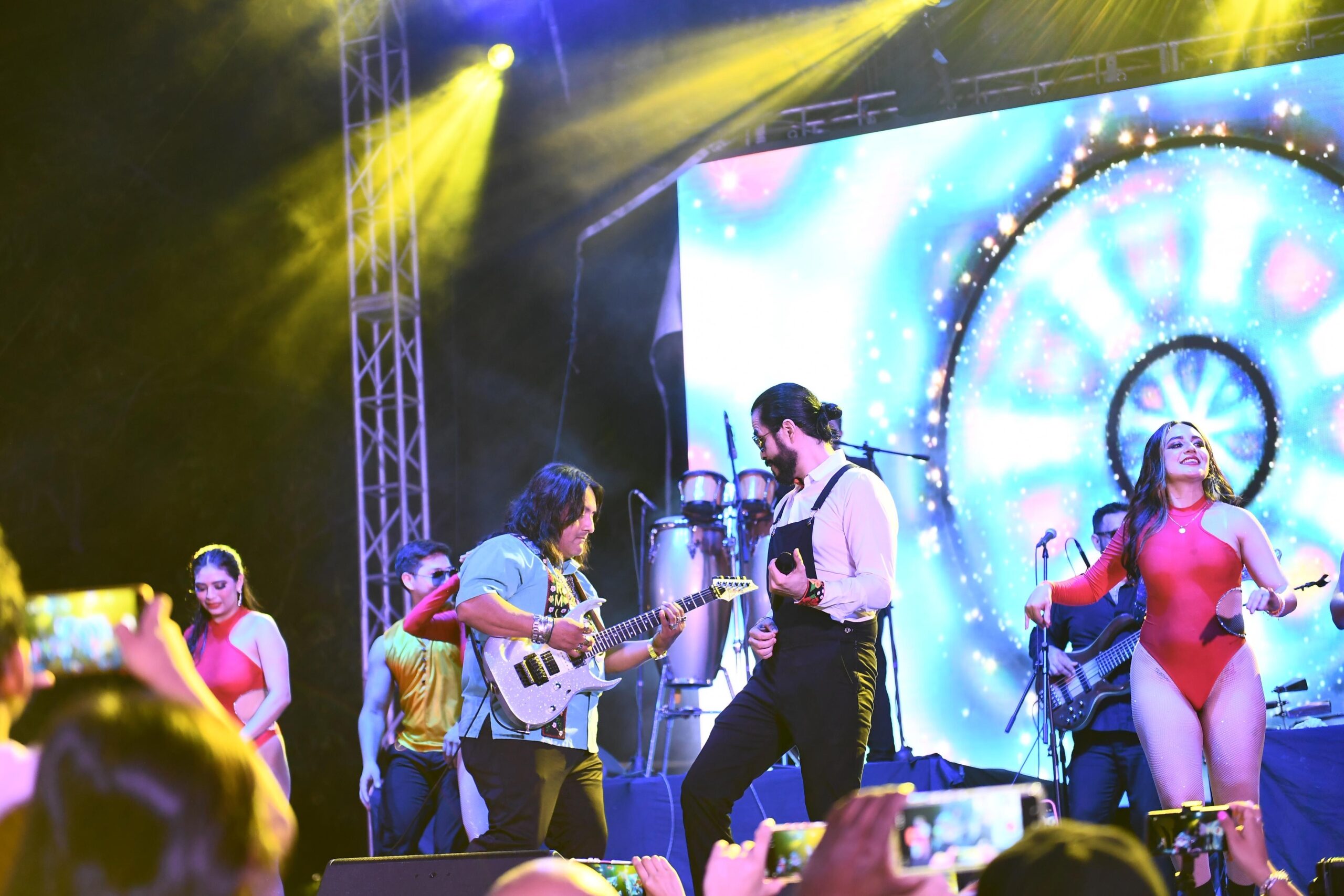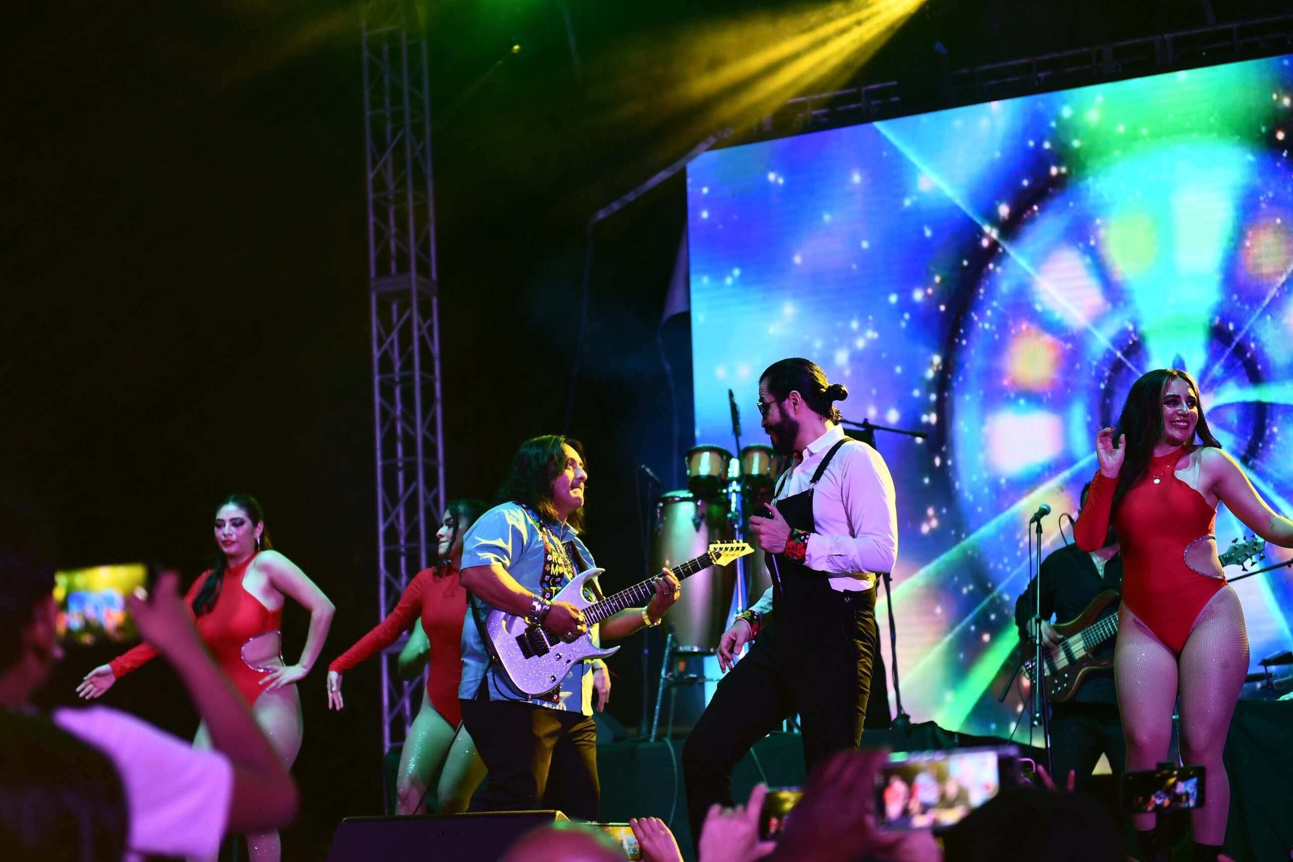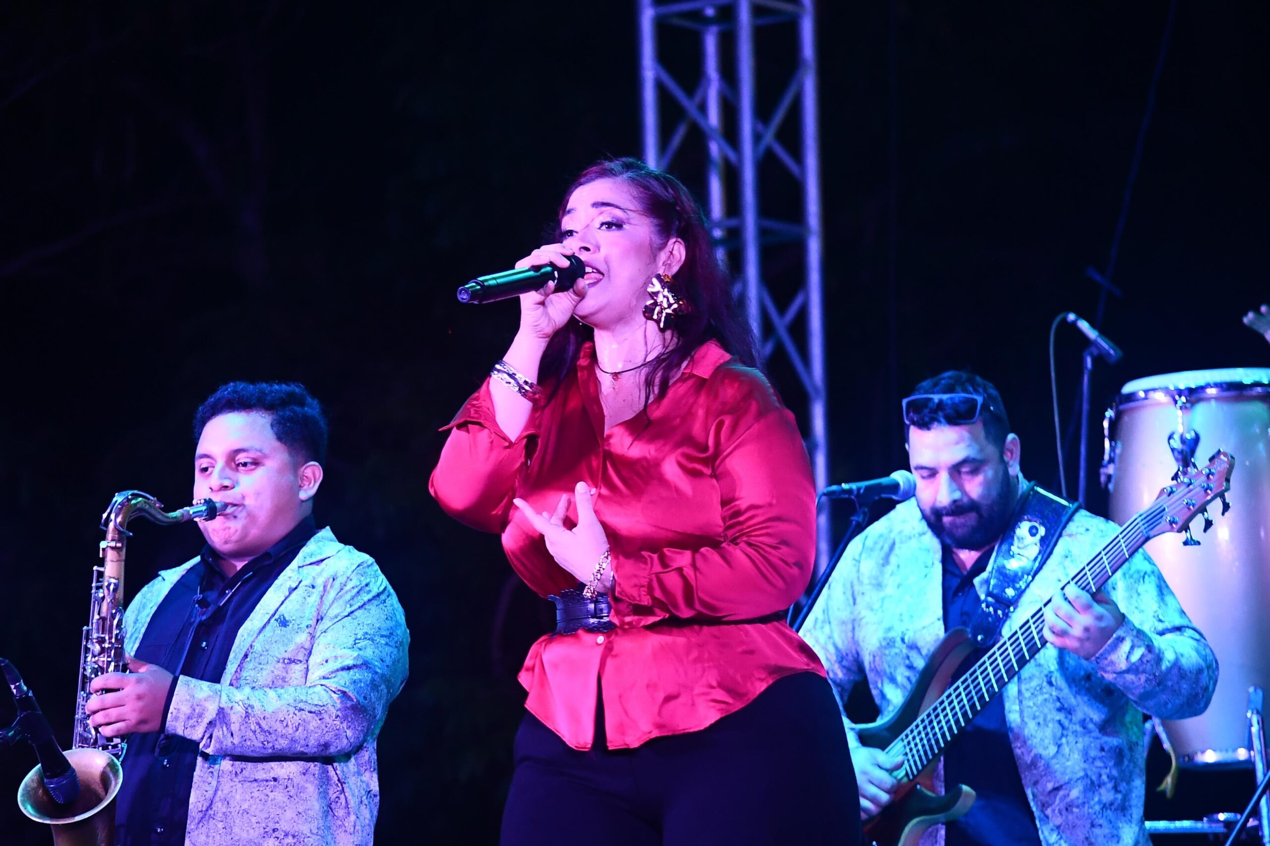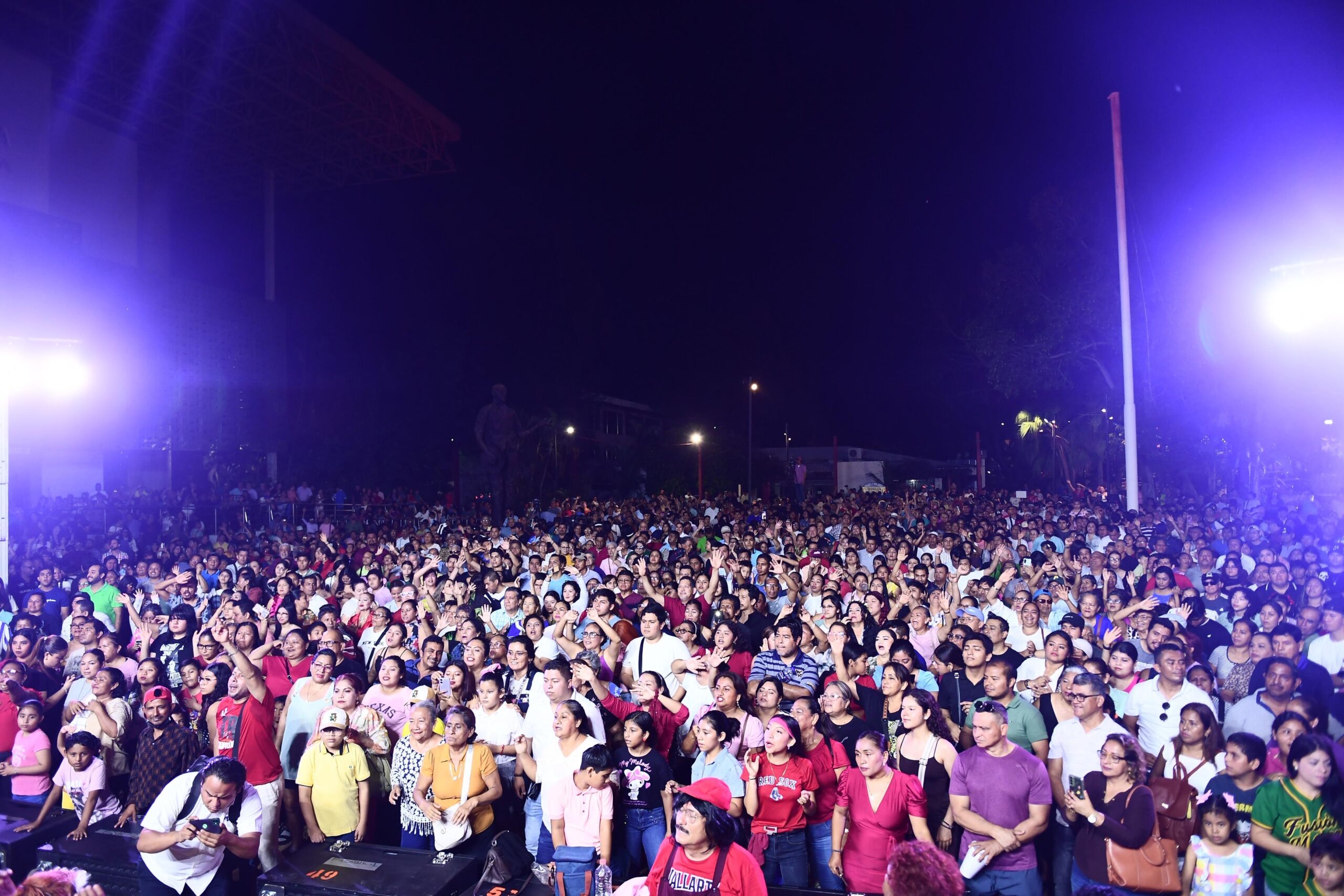 Posteriormente, la explanada de la zona CICOM en Villahermosa se convirtió en el corazón de la celebración. El tributo musical inició con el Grupo Guayacán, seguido por Fusión Mezcal, quienes encendieron el ambiente y prepararon el escenario para una noche cargada de nostalgia y energía.