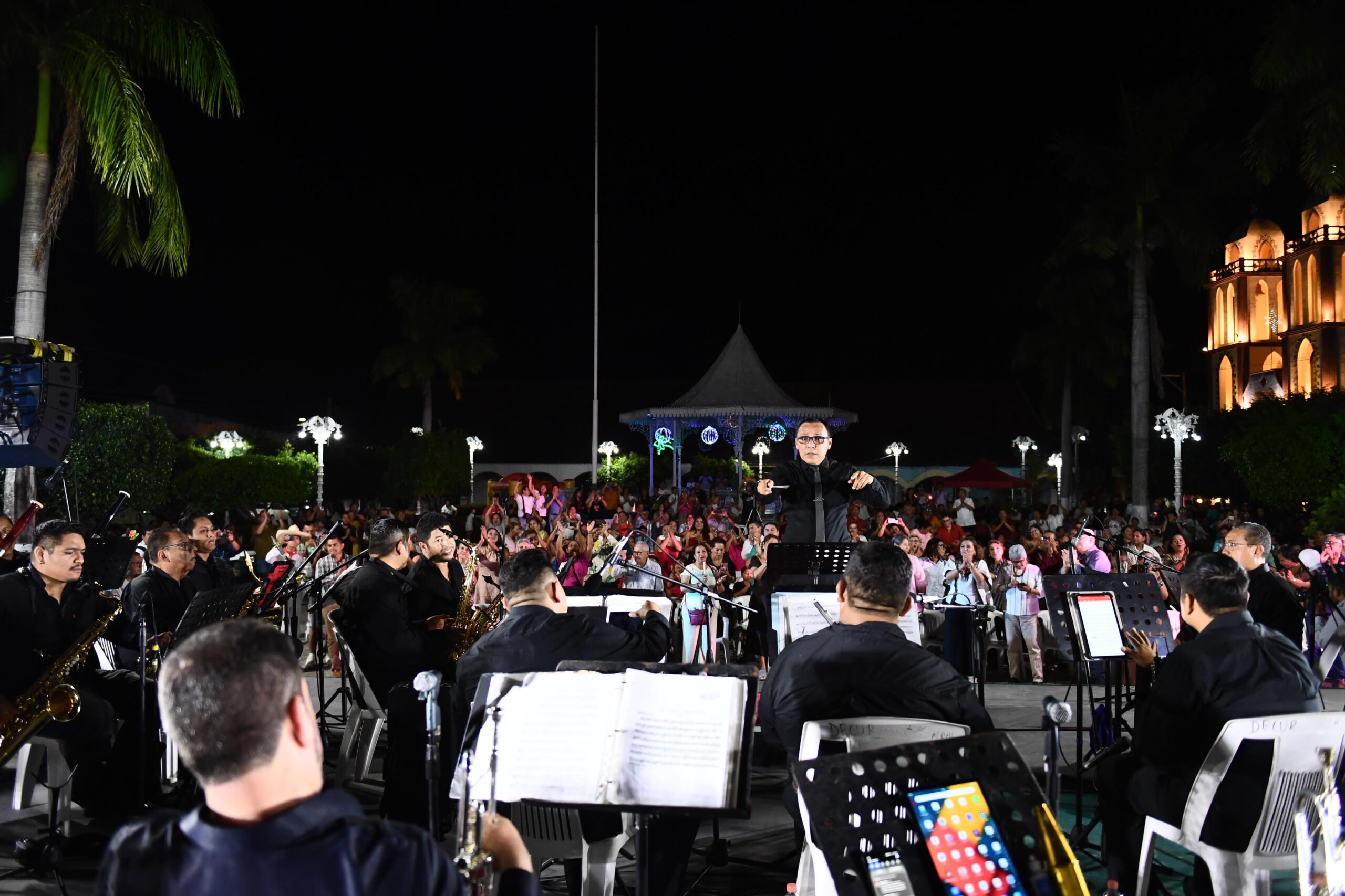 Balancán, Tabasco.- En el marco de la gira musical que la Banda Sinfónica del Gobierno del Estado de Tabasco realiza por los 17 municipios de la entidad, este sábado se presentó con gran éxito en el municipio de Balancán, donde además se rindió un emotivo homenaje a su director, Víctor Flores Paredes, por su destacada trayectoria musical.