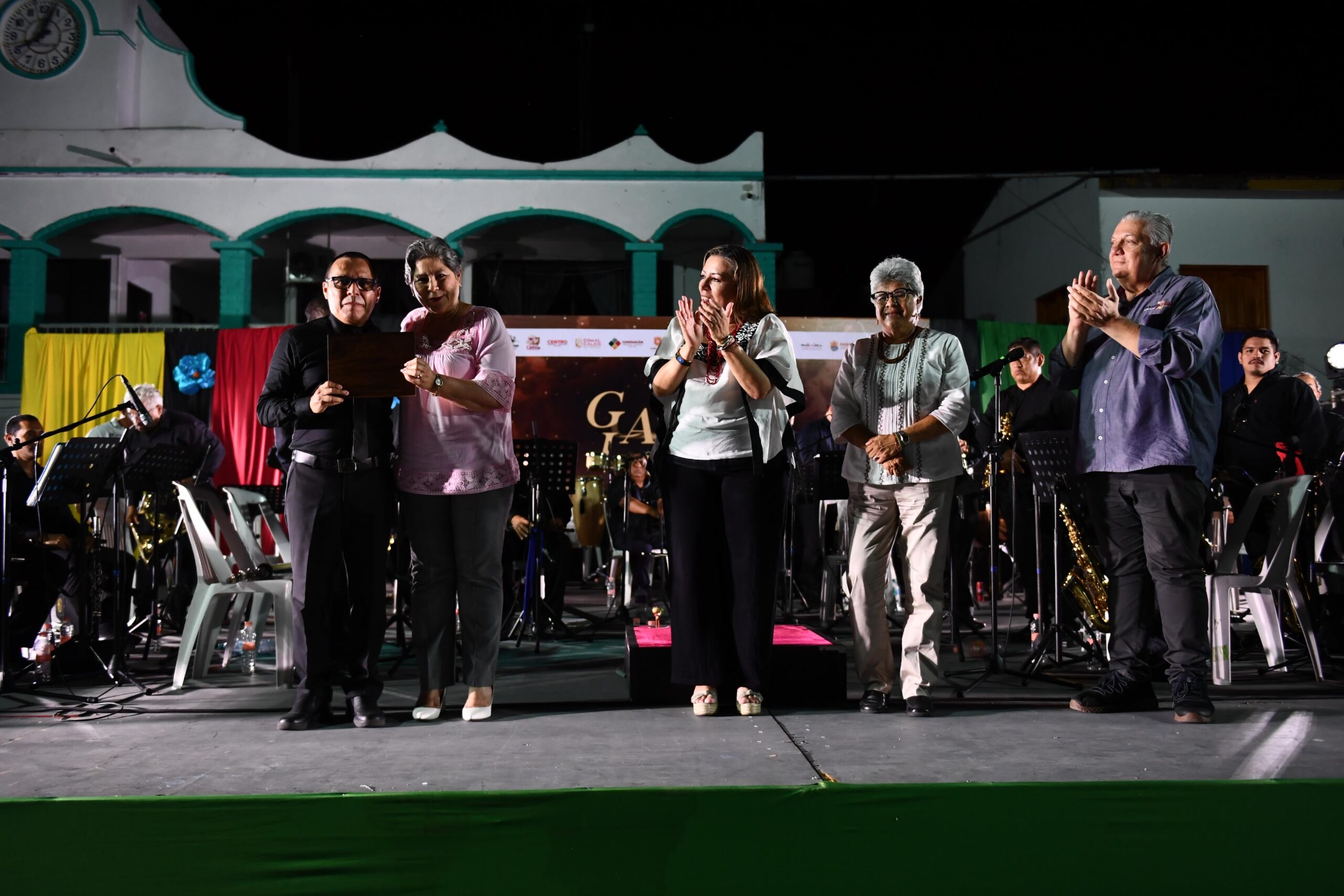 Rinde Balancán homenaje al director Víctor Flores durante presentación de la Banda Sinfónica del Gobierno del Estado