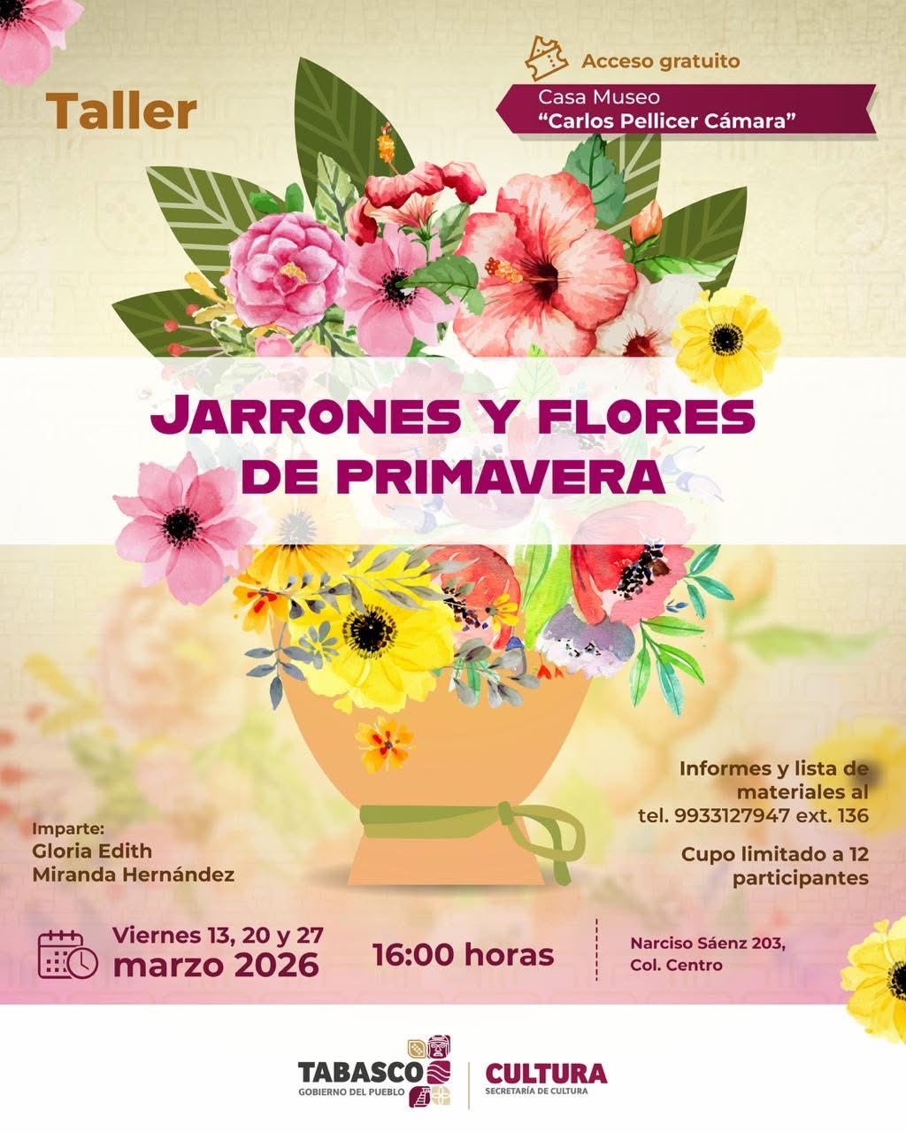 • 16:00 hrs — Taller Jarrones y flores de primavera.