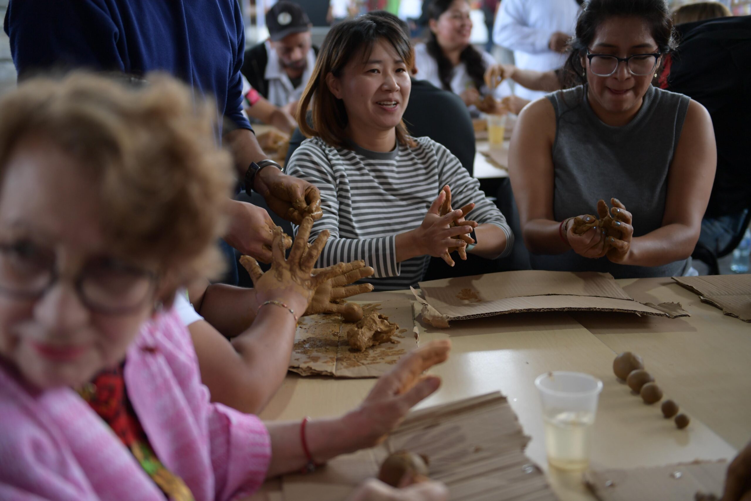 La secretaria Aída Elba Castillo Santiago también acompañó a los docentes y estudiantes en el taller de alfarería, donde visitantes nacionales e internacionales moldearon piezas que se convirtieron en recuerdos entrañables de la cultura tabasqueña.
